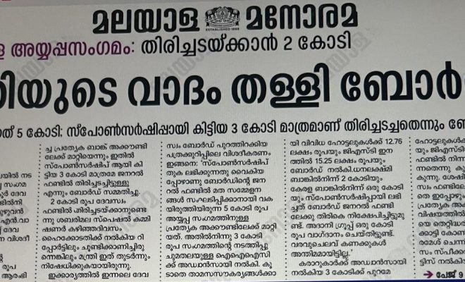 ‘അയ്യപ്പ സംഗമ ‘ വാർത്തകളിൽ തുടർച്ചയായി ‘മൂക്കുകുത്തി’ വീണ് ‘ മനോരമ’