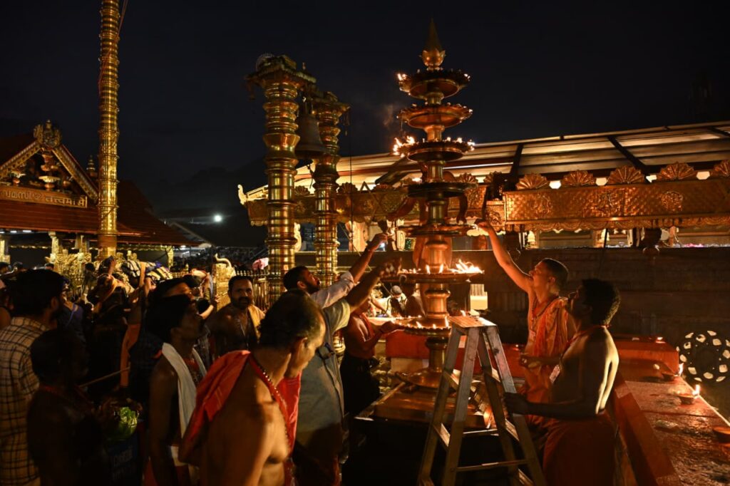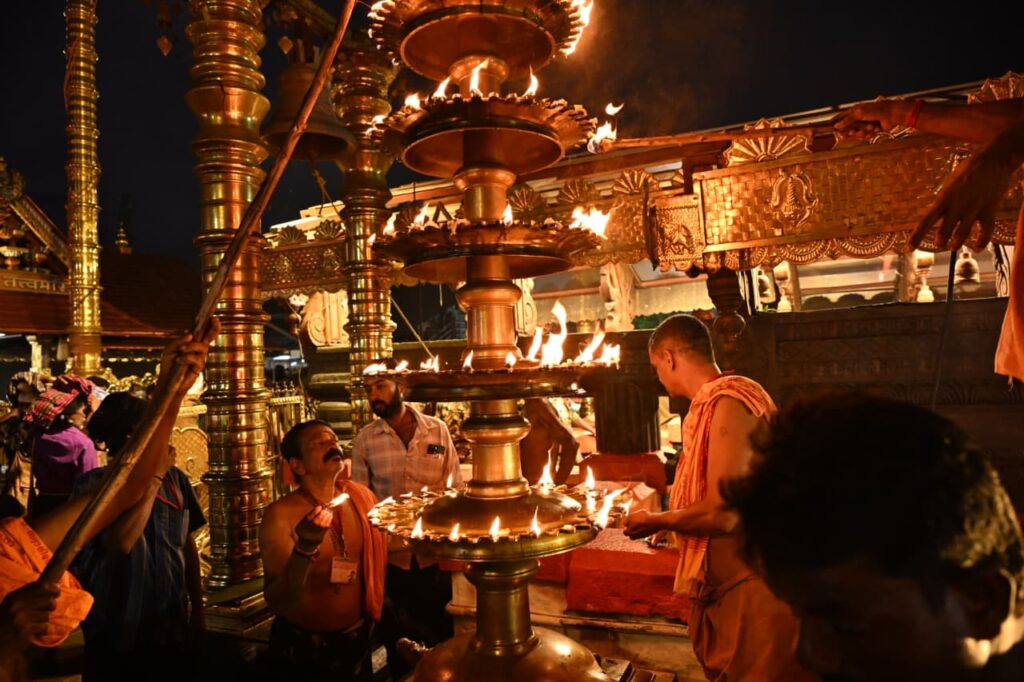 ശബരിമല തൃക്കാർത്തിക ദീപം തെളിയിക്കുന്നു