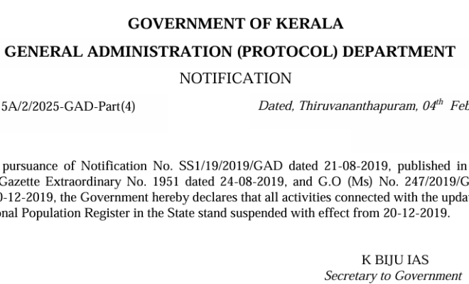 കേരളത്തിൽ ഒരു കാരണവശാലും എൻപിആർ നടപ്പാക്കില്ല, ഉത്തരവ് പുറത്തിറക്കി സംസ്ഥാന സർക്കാർ