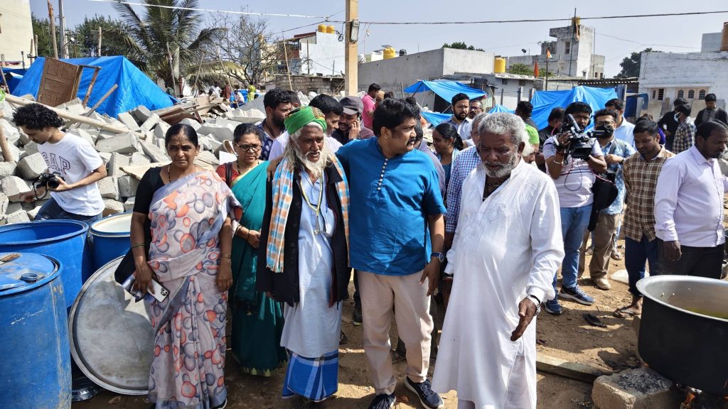 ബംഗളൂരുവിലെ ബുൾഡോസർ കുടിയൊഴിപ്പിക്കലിൽ സിപിഐ(എം) ഇടപെടുന്നതുവരെ അവിടുത്തെ സർക്കാരോ കോൺഗ്രസ് പാർട്ടിയോ അനങ്ങിയിട്ടില്ല. ആദ്യം സംഭവസ്ഥലത്ത് എത്തിയതും പ്രതിഷേധത്തിനു നേതൃത്വം നൽകിയതും കർണ്ണാടകയിലെ സിപിഐ(എം) നേതൃത്വമാണ്. പിന്നെ എഎ റഹീം എംപിയും കെടി ജലീൽ എംഎൽഎയും സ്ഥലത്തെത്തി.