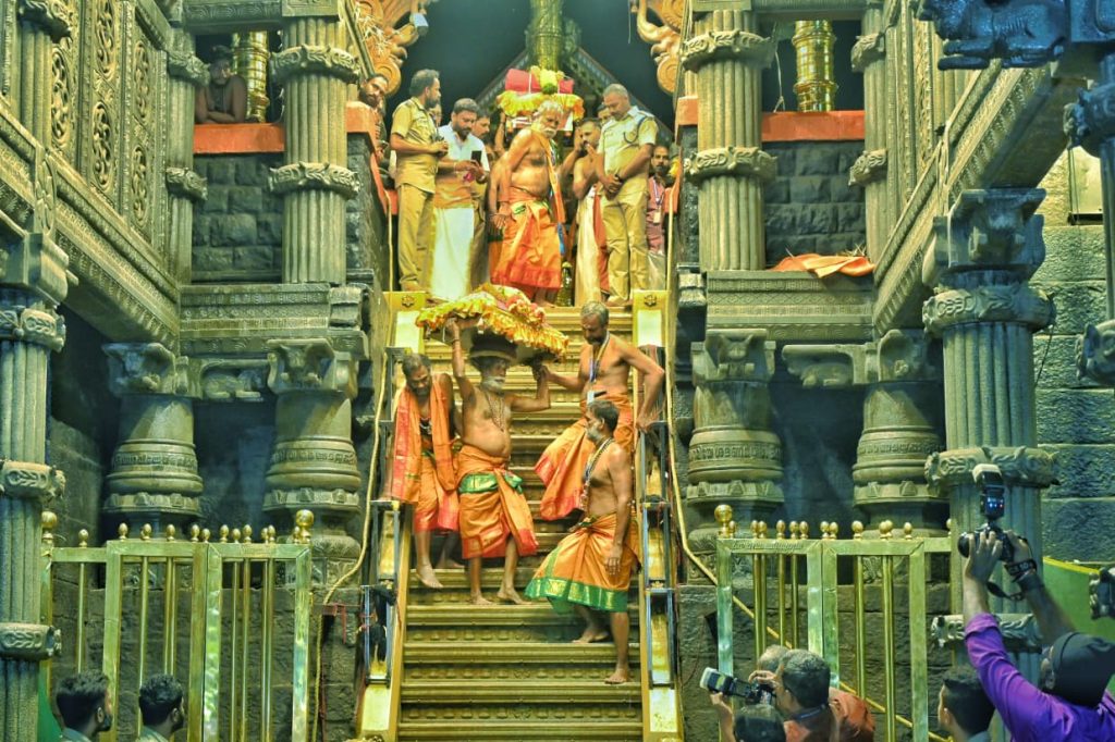 തിരുവാഭരണം പതിനെട്ടാംപടി വഴി തിരിച്ചിറക്കുന്നു