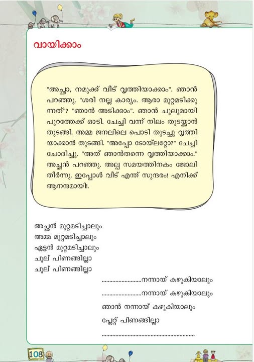 ഒന്നാം ക്ലാസിലെ പാഠപുസ്തകത്തിൽ നിന്ന്