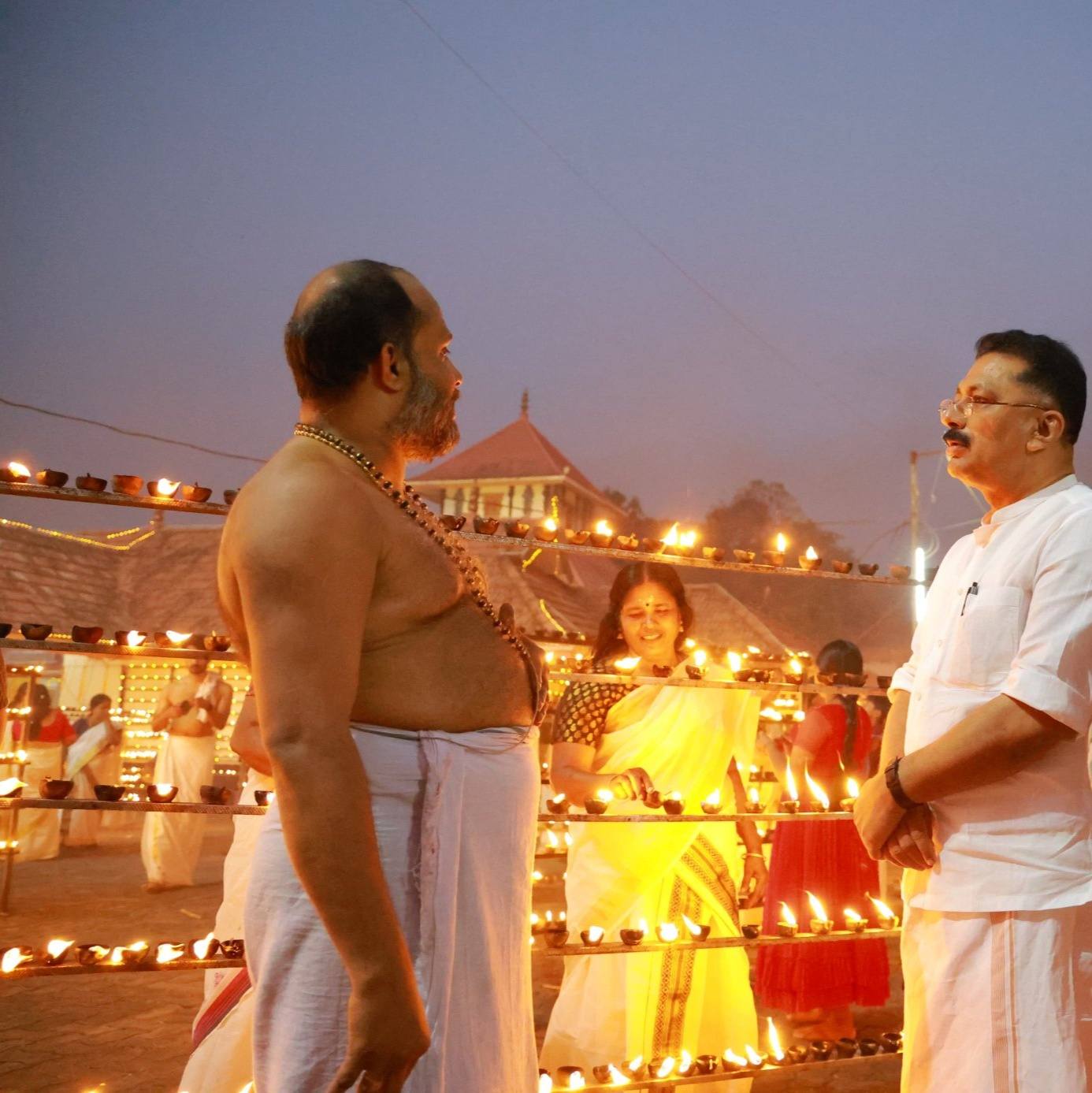 ഇക്കഴിഞ്ഞ ദിവസമാണ് ലക്ഷം ദീപം കൊളുത്തൽ ഉൽസവം അവിടെ നടന്നത്. പതിവു പോലെ ഞാൻ എത്തി. അദ്ദേഹം എന്നെ അമ്പലത്തിന് ചുറ്റും ദീപം കത്തിച്ചത് കാണാൻ ക്ഷണിച്ചു. മനോജ് എമ്പ്രാന്തിരി മുന്നിലും ഞാൻ പിന്നിലുമായി നടന്നു. ധാരാളം ഭക്തർ ക്ഷേത്രത്തെ വലയം വെക്കുന്നുണ്ട്. അവരോടൊക്കെ കൊച്ചു വർത്തമാനങ്ങൾ പറഞ്ഞ് മുന്നോട്ടു നീങ്ങി. എണ്ണയിൽ ചാലിച്ച തിരികൾ കെടാതെ കത്തി പ്രകാശം പ്രസരിപ്പിച്ചു. ആ പൊന്നിൻ വെളിച്ചത്തിൽ കുളിച്ച് നിൽക്കുന്ന ശിവക്ഷേത്രം കാണാൻ എന്തൊരു ഭംഗിയാണെന്നോ?