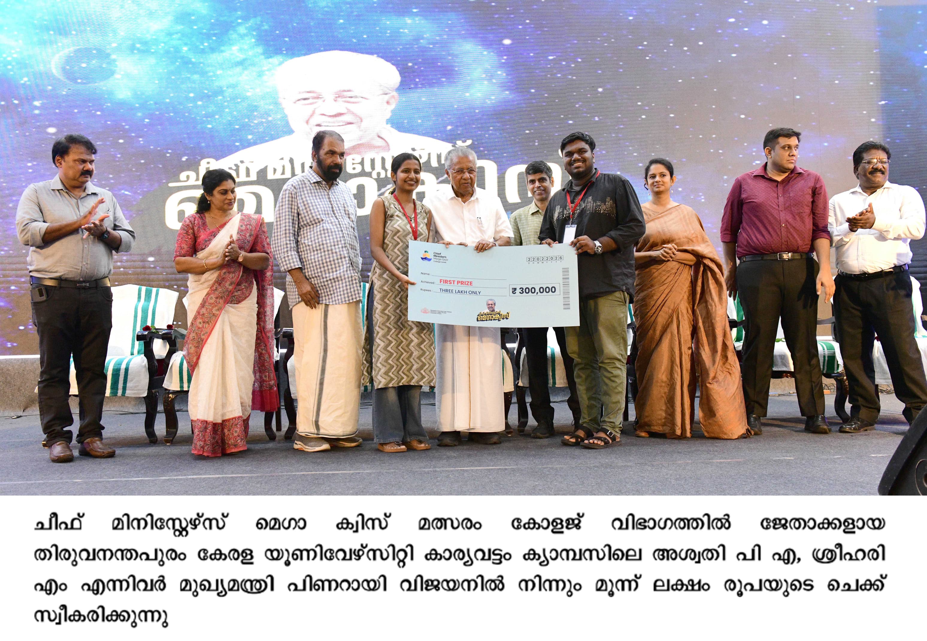 ചീഫ് മിനിസ്റ്റേഴ്‌സ് മെഗാ ക്വിസ്: എൻഎസ്എസ് മടവൂർ ,കാര്യവട്ടം യൂണിവേഴ്സിറ്റി കാമ്പസ് ജേതാക്കൾ
