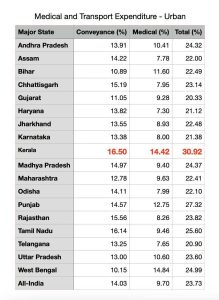 അടുത്ത ഏറ്റവും കൂടുതൽ ചെലവ് ആരോഗ്യത്തിനാണ്, അതും ഇന്ത്യയിൽ ഏറ്റവും കൂടുതൽ. അതും ഈ കമ്മിക്കൂട്ടങ്ങൾക്കോ വികസന വിദഗ്ധർക്കോ അറിയുമെന്ന് തോന്നുന്നില്ല. രണ്ടും കൂടെ ചേർക്കുമ്പോൾ ഭക്ഷണ ഇതര ചെലവിന്‍റെ നാൽപതു ശതമാനമായി. ഈ രണ്ടു ചെലവുകളെയും കുത്തനെ കുറയ്ക്കുക എന്നതാണ് യുഡിഫിൻ്റെ രണ്ടു ഗ്യാരണ്ടികൾ ചെയ്യുക. എന്തെ സ്ത്രീകൾക്കു മാത്രം സൗജന്യ യാത്രയെന്നല്ലേ? അതിന്‍റെ knock-ഓൺ ഇഫ്ഫക്റ്റ് കുടുംബത്തിനു മുഴുവൻ നേട്ടമുണ്ടാകും.
