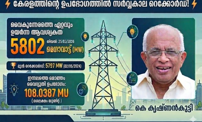 മാർച്ച് 25ന് 5,802 മെഗാവാട്ടിൻ്റെ വൈദ്യുതി ഉപഭോഗ റെക്കോർഡ്