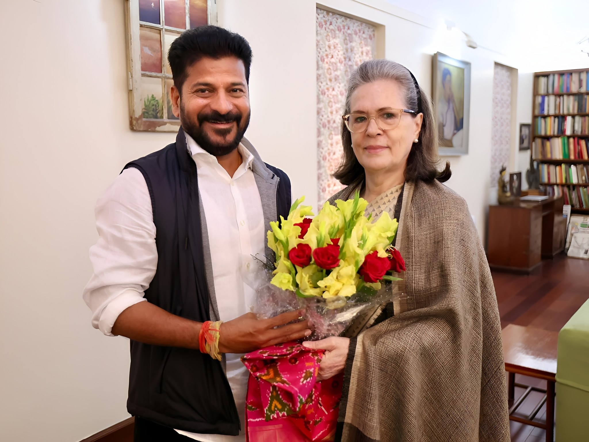 തെലുങ്കാന മുഖ്യമന്ത്രി രേവന്ത് റെഡ്ഡിയും സോണിയാ ഗാന്ധിയും