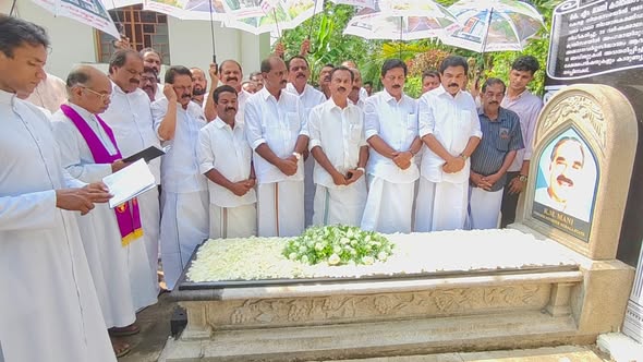 നിയമസഭാ തെരെഞ്ഞെടുപ്പില്‍ മത്സരിച്ച കേരള കോണ്‍ഗ്രസ് (എം) പാര്‍ട്ടിയുടെ 12 സ്ഥാനാര്‍ത്ഥികളും നേതാക്കളും കെ എം മാണിയുടെ കല്ലറയില്‍ പ്രത്യേക പ്രാര്‍ത്ഥന നടത്തുന്നു