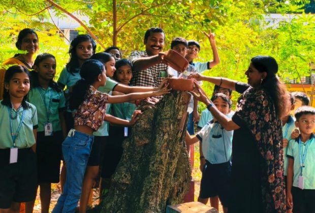 പക്ഷികളുടെ ദാഹമകറ്റാൻ തണ്ണീർകുടമൊരുക്കി തൈക്കാട് മോഡൽ ഗവ.എൽ പി സ്കൂൾ കുട്ടികൾ