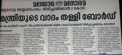 ‘മന്ത്രിയുടെ വാദം തള്ളി ബോർഡ് തിരിച്ചടയ്ക്കാൻ രണ്ട് കോടി’ എന്ന നിലയിൽ നൽകിയിരിക്കുന്ന വാർത്ത സത്യ വിരുദ്ധം തിരുവനന്തപുരം:അയപ്പസംഗമ വാർത്തകളിൽ തുടർച്ചയായി ‘മൂക്കുകുത്തി’ വീണ് ‘മലയാള മനോരമ’.മുഖ്യവാർത്തയായി ഫെബ്രുവരി 14ന് കൊടുത്തത് അപ്പടി ... -