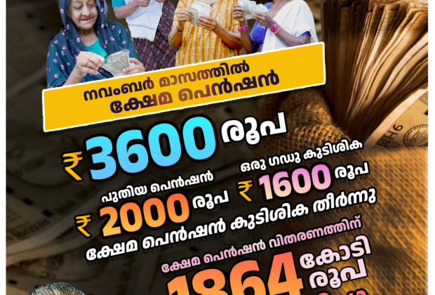 ഈ മാസം ക്ഷേമ പെൻഷൻ 20 മുതൽ,കിട്ടുന്നത് 3,600 രൂപ
